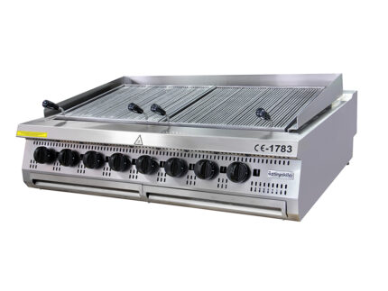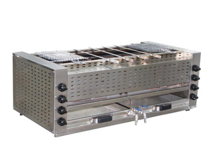- 130 mm. genişliğindeki özel tasarım döküm pişirme ızgaralar iki taraflı kullanıma uygundur. Seviye ayarı ile pişirme istenilen seviyede yapılabilmektedir.